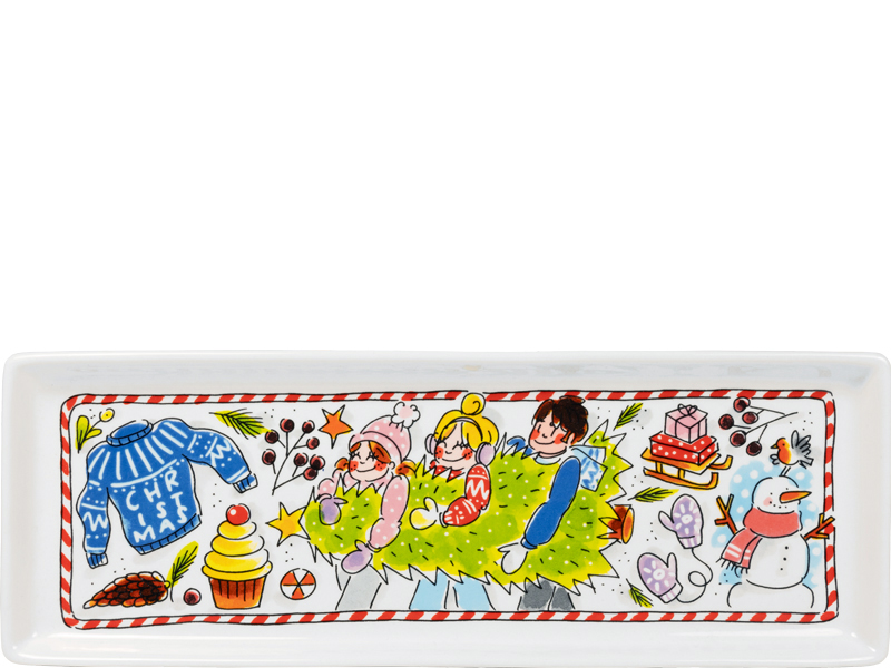 Geef je kersttafel een flinke dosis gezelligheid met de Lange Cakeschaal Kerst van Blond Amsterdam. Perfect voor je zelfgebakken lekkernijen, of het nu gaat om een kerstcake of koekjes. De schaal is versierd met vrolijke kerstillustraties, zoals een warme kersttrui en kinderen die samen een kerstboom sjouwen. Kortom, instant kerstsfeer! Deze schaal is niet alleen superhandig, maar ook een echte blikvanger tijdens je kerstdiner. Of je nu gasten ontvangt of gewoon wat extra feestvreugde wilt aan je eigen tafel, deze cakeschaal doet het werk. Een perfecte aanvulling op je Blond Amsterdam kerstcollectie en dé manier om je baksels in stijl te presenteren.