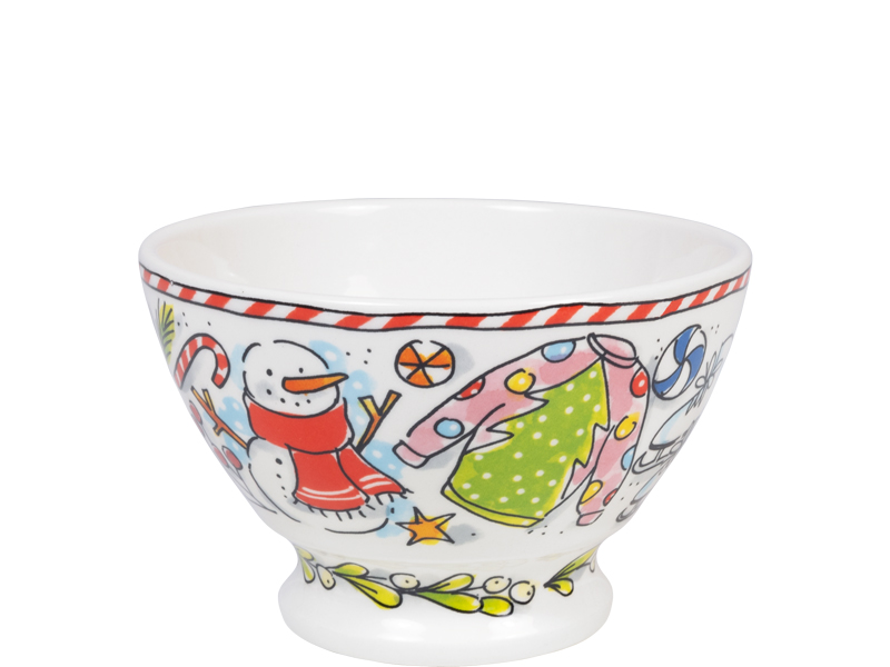 Breng de kerstsfeer naar je tafel met de kerstkom van 13cm van Blond Amsterdam! Deze feestelijke kom is perfect voor je favoriete kerstlekkernijen zoals ijs, desserts, of een flinke lading kerstkoekjes. Versierd met vrolijke illustraties van kerstmannen, cadeautjes, en een sneeuwpop, maakt deze kom van elke snack een klein kerstfeest. Het leuke voetje geeft de kom een extra speelse uitstraling, waardoor hij een eyecatcher is op elke feesttafel. Of je nu gasten hebt voor een kerstdiner of gewoon lekker voor jezelf wat lekkers wilt serveren, deze kom zorgt voor de nodige kerstsfeer. Een must-have voor je Blond Amsterdam kerstcollectie, en ook een geweldig cadeau-idee voor een kerstliefhebber!
