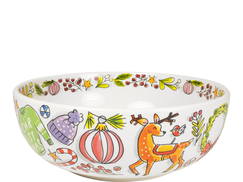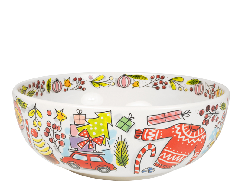 Breng een flinke portie kerstgezelligheid op tafel met deze serveerschaal 23 cm "Kerst" van Blond Amsterdam! Of je nu snacks, koekjes of een hele stapel kerstkransjes serveert, deze schaal maakt elk gerecht een feest. Versierd met vrolijke illustraties van kerstmannen, cadeautjes en een hoop sneeuwpret, tovert deze schaal gegarandeerd een glimlach op het gezicht van je gasten. En zeg nou zelf, wie kan er nee zeggen tegen een extra dosis kerstsfeer tijdens het eten? Deze schaal is niet alleen praktisch, maar ook een echte blikvanger op je feesttafel. Perfect om je baksels in stijl te presenteren of gewoon om wat kerstkoekjes lekker nonchalant op te stapelen. Een must-have voor elke kerstfan! Ontdek meer items uit de kerstcollectie van Blond Amsterdam.