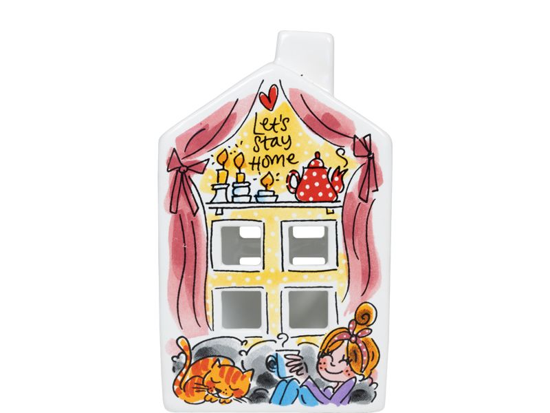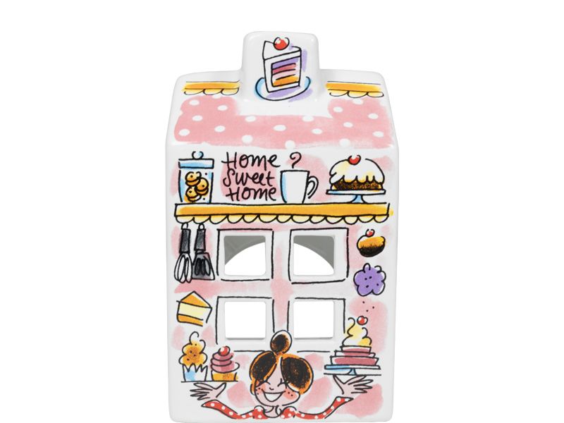 Home Sweet Home! Hoe leuk zijn onze theelichthuisjes. Sfeervol licht komt door de raampjes van het huisje. Het nieuwste Home Sweet Home theelichthuisje past perfect in onze Even Bijkletsen collectie. Elke zijde heeft kenmerkende Blond illustratie. In huis genieten wij van de zelfgemaakte taartjes en van een kop thee op de bank of vieren we een feestje.
