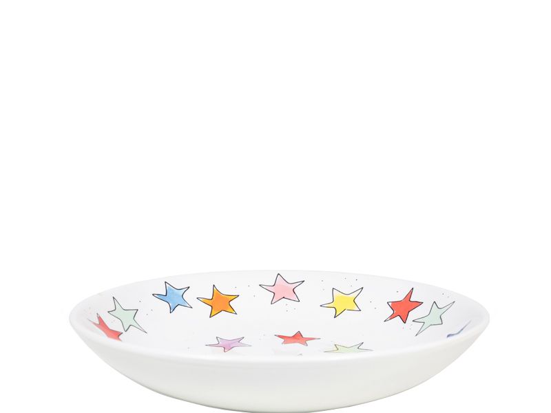 Blond Amsterdam heeft aan de populaire collectie Even Bijkletsen nieuwe diepe borden toegevoegd. Een van deze borden heeft deze keer niet de kenmerkende illustraties, maar kleurrijke sterren. Het bord is perfect voor zelfgemaakte soepen, salades of warme gerechten. Het bord combineer je prima met de andere artikelen uit de Even Bijkletsen collectie.