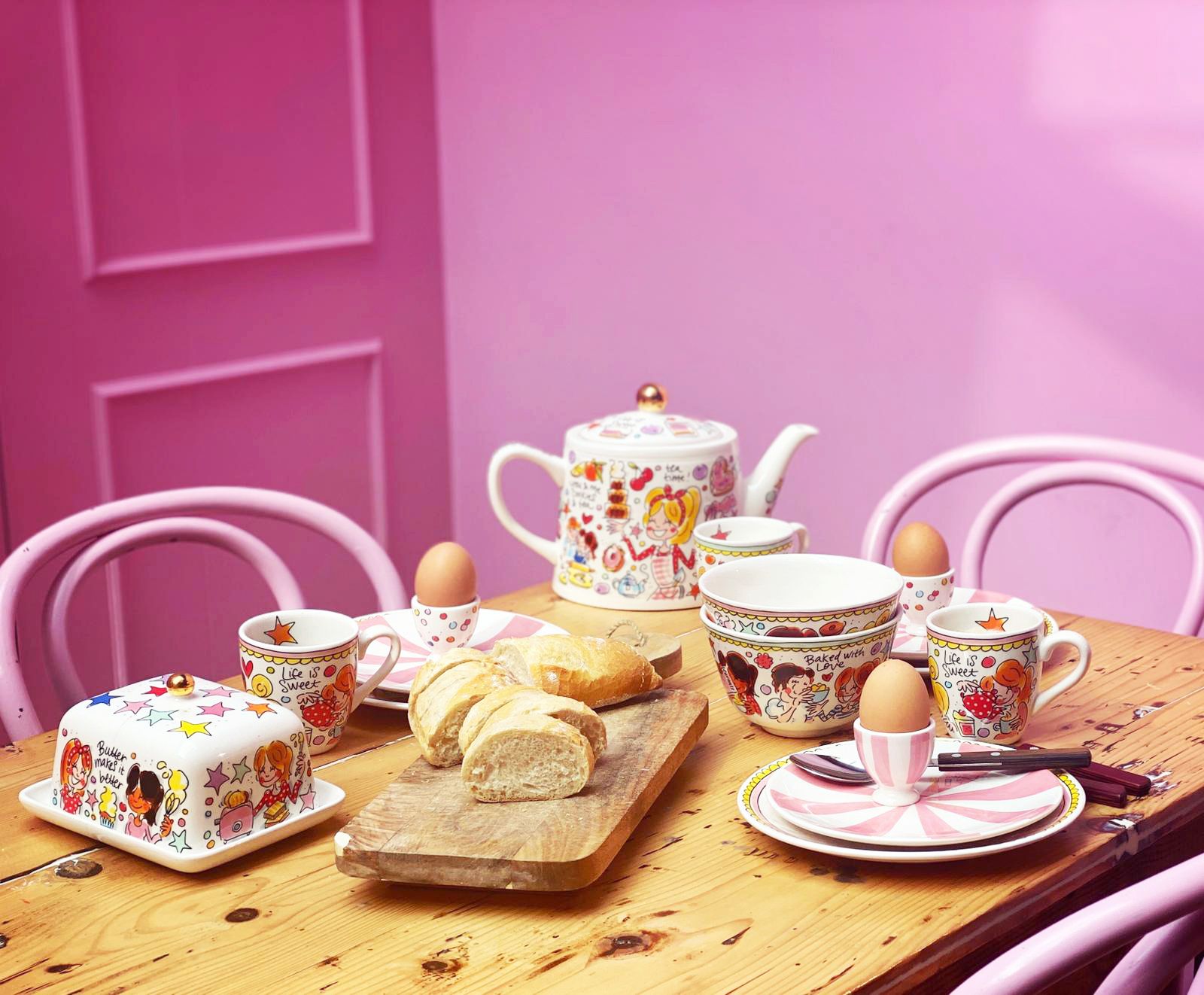 De collectie Even Bijkletsen is nog steeds de grote favoriet van vele Blond-liefhebbers. Daarom hebben we deze lijn vernieuwd met 12 superleuke items. De nieuwe items zijn leuk om met elkaar te combineren, maar passen ook heel goed bij onze huidige Even Bijkletsen items. Op deze kom staan onze herkenbare, vrolijke illustraties en bevat een mintgroene rand. Op de kom staan teksten zoals: """"Baked with love"""" en """"Juicy details..."""". Aan de binnenkant van de kom staat een roze hart afgebeeld. Heerlijk om 's ochtends mee te ontbijten of 's avonds uit te snacken!