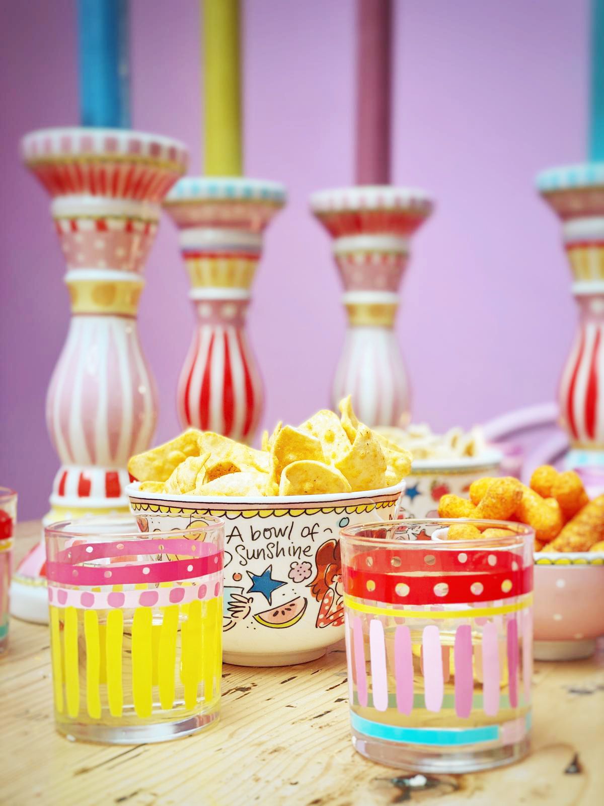 De collectie Even Bijkletsen is nog steeds de grote favoriet van vele Blond-liefhebbers. Daarom hebben we deze lijn vernieuwd met 12 superleuke items. De nieuwe items zijn leuk om met elkaar te combineren, maar passen ook heel goed bij onze huidige Even Bijkletsen items. Dit vrolijke glas is perfect om je tafel mee op te vrolijken en om heerlijke sapjes uit te drinken. Op het glas staan allerlei gele strepen samen met andere strepen in diverse kleurtjes. Combineer het glas samen met het andere gestreepte glas voor een leuke set!