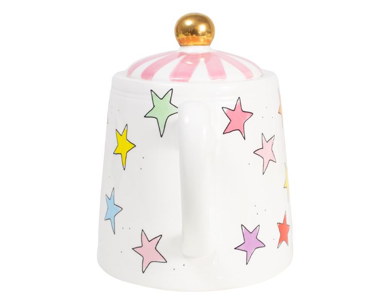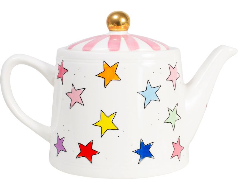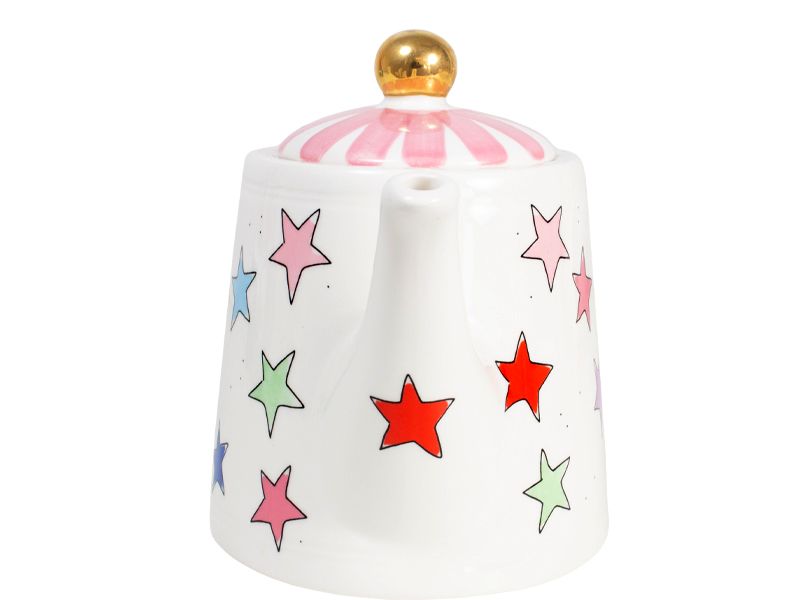 De collectie Even Bijkletsen is uitgebreid met nieuwe items. Dit keer niet met de kenmerkende illustraties, maar met kleurrijke sterren en strepen. Deze theepot past bij zowel de streep bekers als bij de sterren. Echter kan je deze theepot ook gewoon combineren bij je huidige servies van Blond Amsterdam.