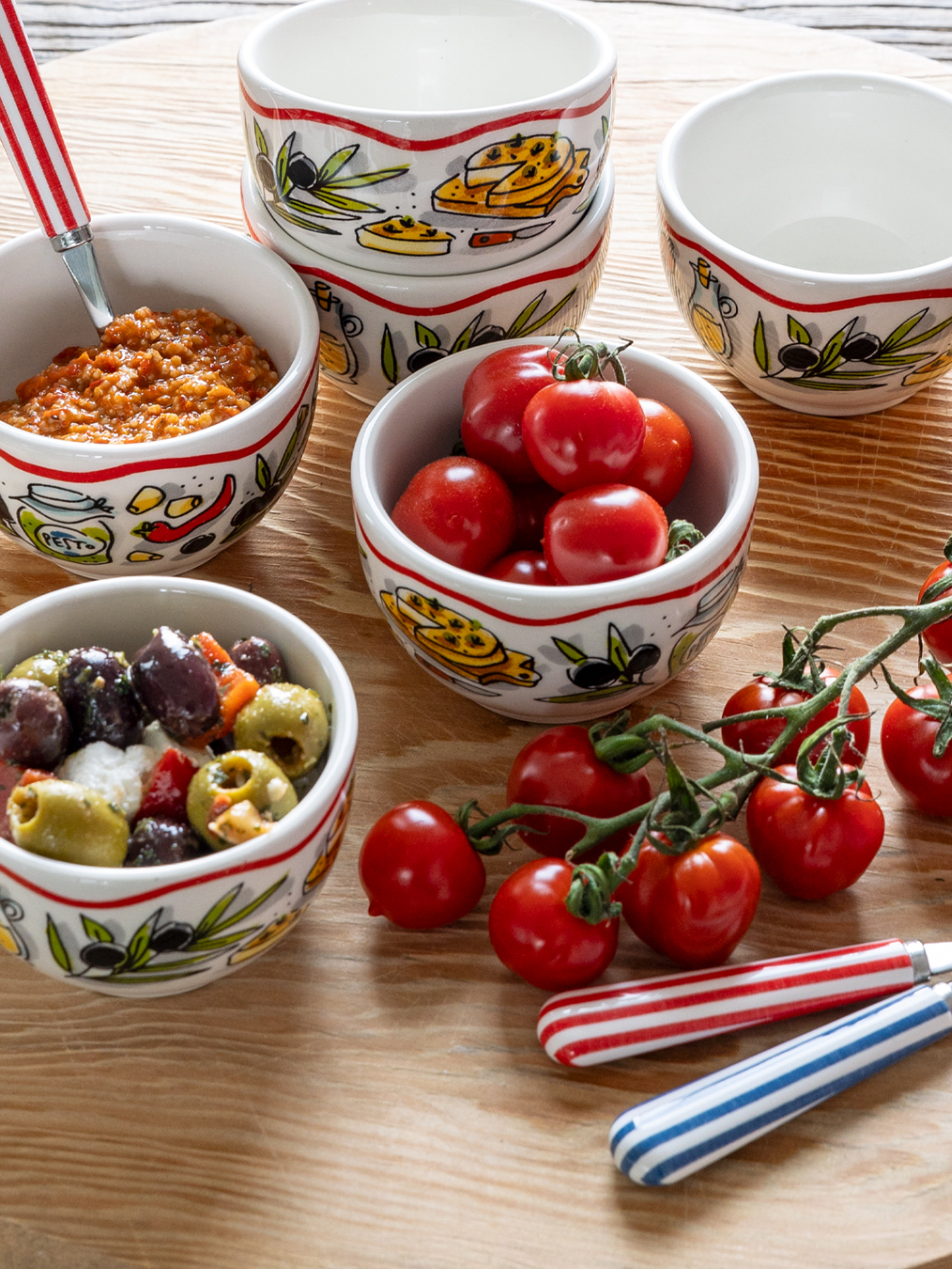 Breng de charme van Italië naar je tafel met de Kom "Italia" van Blond Amsterdam. Deze kleine kom is perfect voor het serveren van dips, sauzen, noten, snoepjes of andere kleine snacks. Versierd met vrolijke Italiaanse illustraties straalt deze kom de kenmerkende, speelse stijl van Blond Amsterdam uit. De Kom "Italia" is ideaal voor dagelijks gebruik en past perfect bij de rest van je Blond Amsterdam collectie. Of je nu een gezellige avond met vrienden hebt of gewoon geniet van een snack, deze kom voegt een vleugje Italiaanse flair toe aan elke gelegenheid.