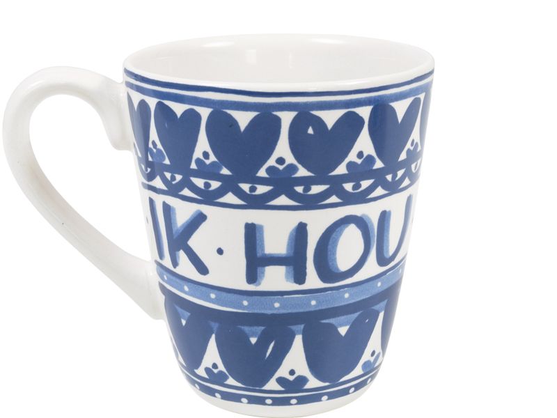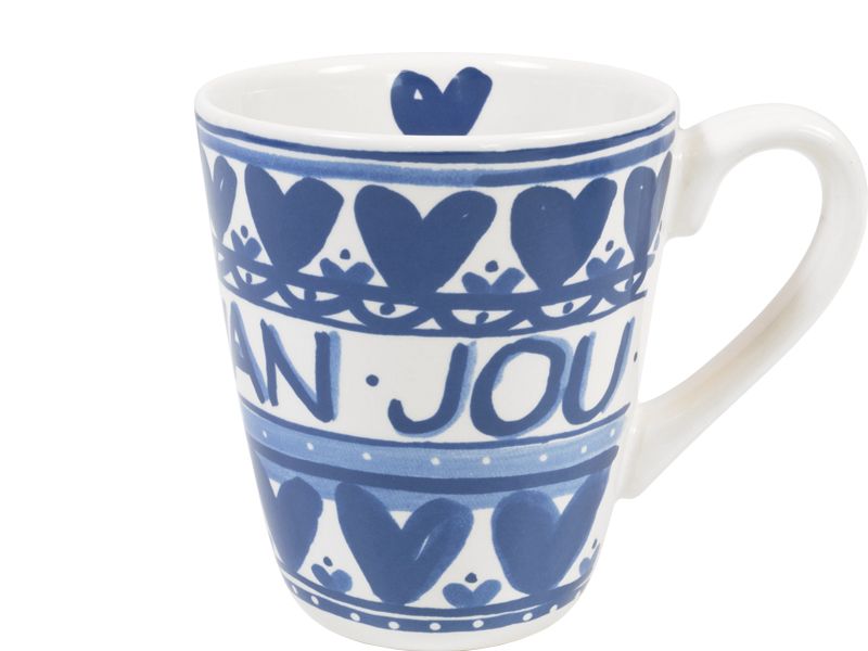 YOU & ME, MEANT TO BE Liefde kun je 365 dagen per jaar vieren maar op 14 februari nog net een beetje extra: Valentijnsdag. Een mooie gelegenheid om je (stille) liefde te laten weten dat jullie voor altijd bij elkaar horen. Door middel van een ontbijtje op bed, een lievelingsfoto in een lijst, of zijn/haar lievelingssnacks in de hartjes schaal. Is jouw geliefde fan van Delfts Blond? Dan hebben wij goed nieuws. Speciaal voor Valentijnsdag is er een speciale Delfts Blond beker gemaakt. De illustraties zijn geïnspireerd op het traditionele Delfts blauw en op de beker staat de tekst: Ik hou van jou! Verras je geliefde met deze beker en maak er een fijne Valentijnsdag van!
