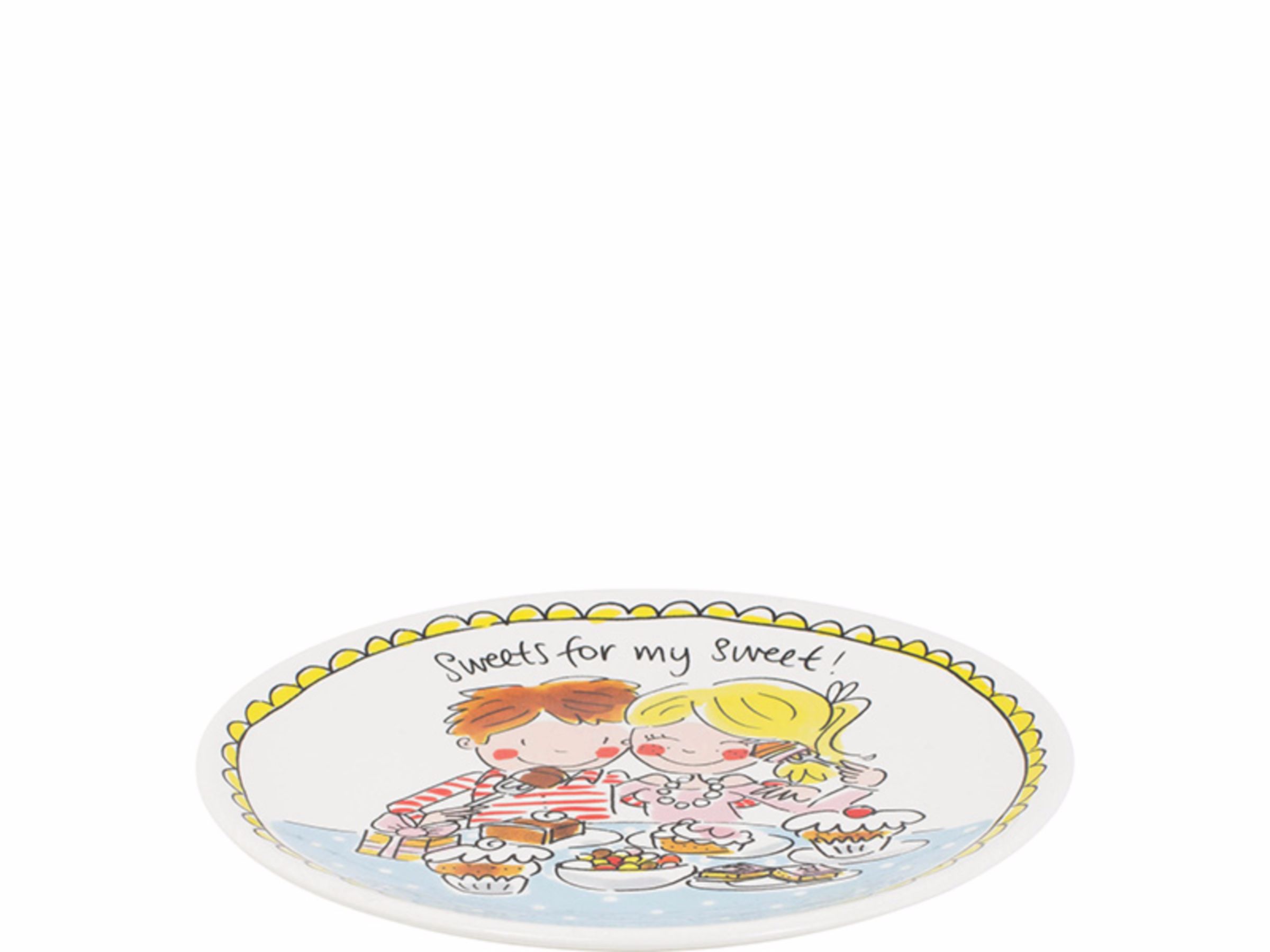 Geniet van je favoriete zoetigheden met dit schattige taartbord van 18 cm uit de "Even Bijkletsen" collectie van Blond Amsterdam. Het bord is voorzien van de tekst "Sweets for My Sweet!" en versierd met een vrolijke illustratie in de kenmerkende stijl van Blond Amsterdam, waarop een koppel gezellig zoetigheid en taartjes eet. Dit taartbord is perfect voor het serveren van taart, gebakjes of andere lekkernijen en brengt een vleugje Amsterdamse gezelligheid naar je tafel.