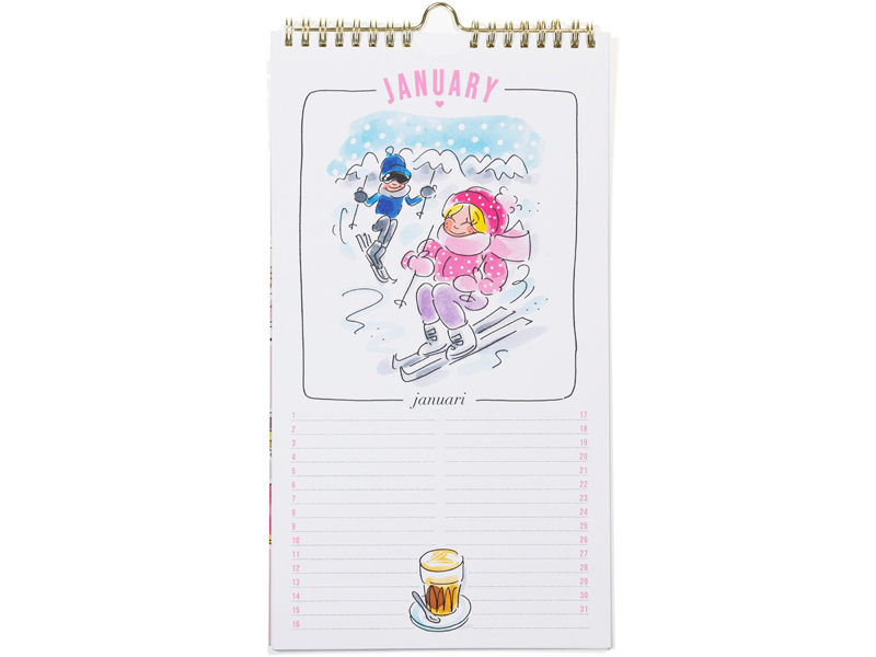 Nooit meer een verjaardag of speciale datum vergeten. Je zet hem nu op onze nieuwe verjaardagskalender uit de Even Bijkletsen collectie. Voor elke maand is er een aparte pagina waarop je alle verjaardagen kunt noteren en heeft een vrolijke Blond Amsterdam illustratie. De kalender is langwerpig, met een goudkleurige spiraal en ophangbeugeltje. Hang hem op een strategische plek en je hoeft nooit meer een jarige job te vergeten.